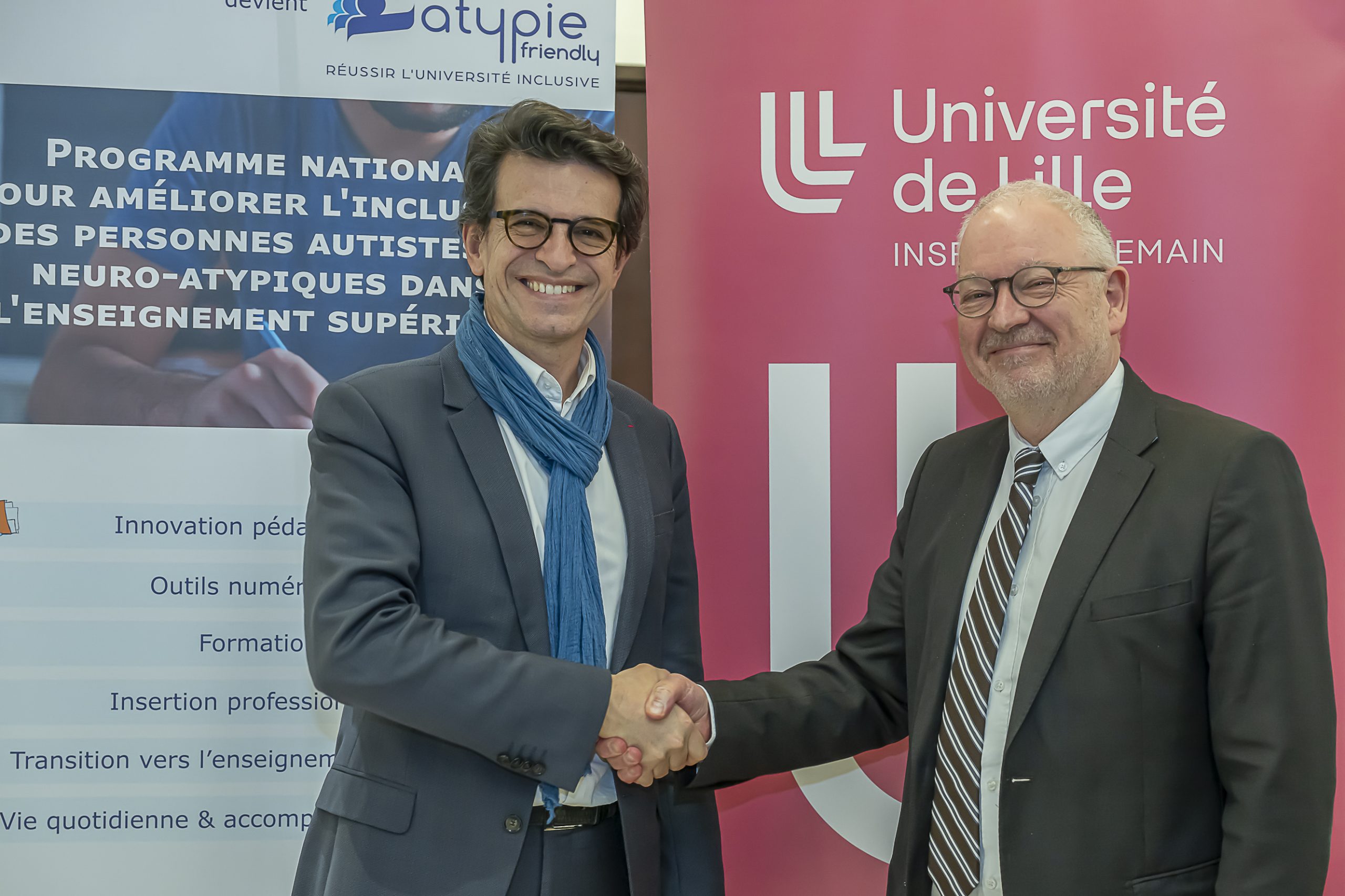 En tant que signataire de la charte Atypie-Friendly, l’Université de Lille dispose d’une équipe locale qui accompagne les étudiant·es présentant un Trouble du Neuro Développement (TND) dans la mise en place d’un environnement pédagogique inclusif.